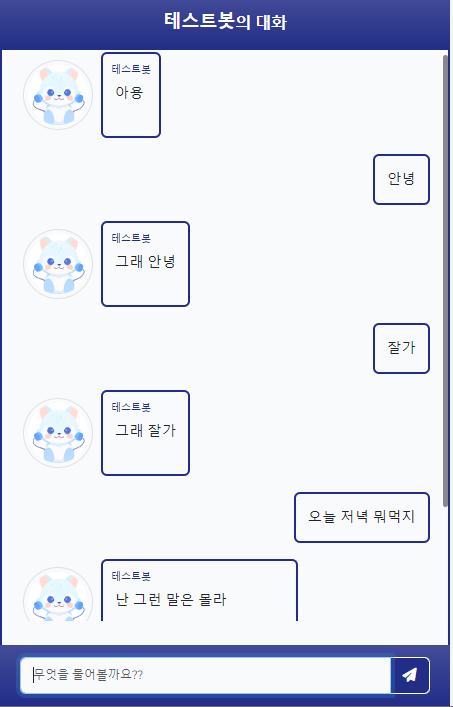 | 챗봇 메신져 제작기 24.07.15 (7) | 2024.07.16 |