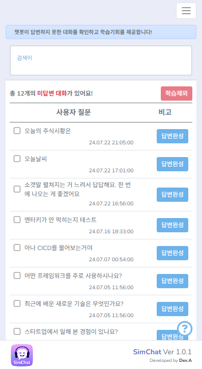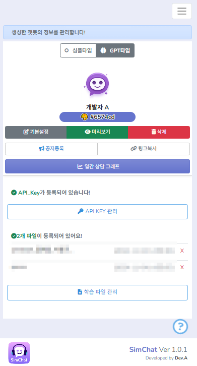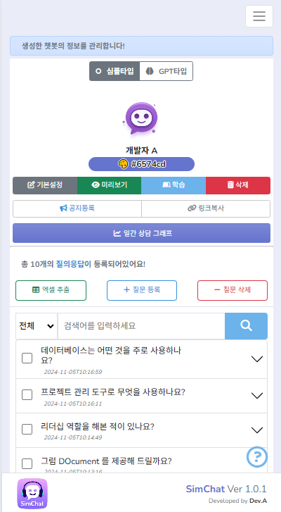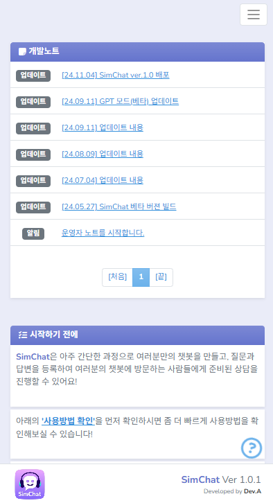 이것 저것 필요한 기능을 연구하여 제작하고 이제 SimChat v1.0을 공개합니다.