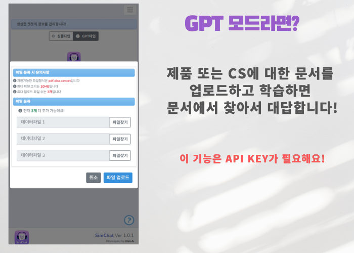 ** 개인용 챗봇 예시 : https://simchat.aimor.site/msg?c_key=a8228927-9bbb-448f-886b-9ed41997b192