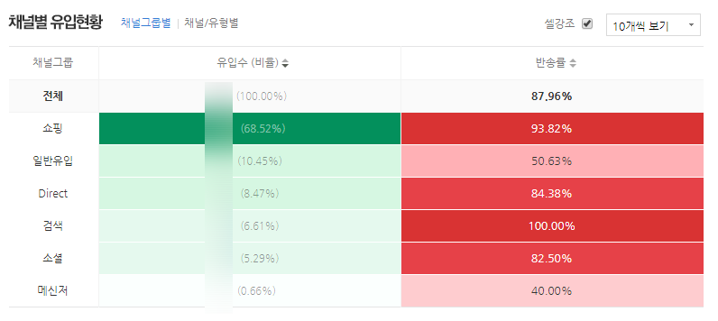 이미 상품소개를 보고 들어온 고객과 지인에게 메신져를 통해 유입된 고객은 당연히 반송율(1분이상 체류 하지 않았을 경우 반송으로 알고있습니다)이 가장 낮습니다.